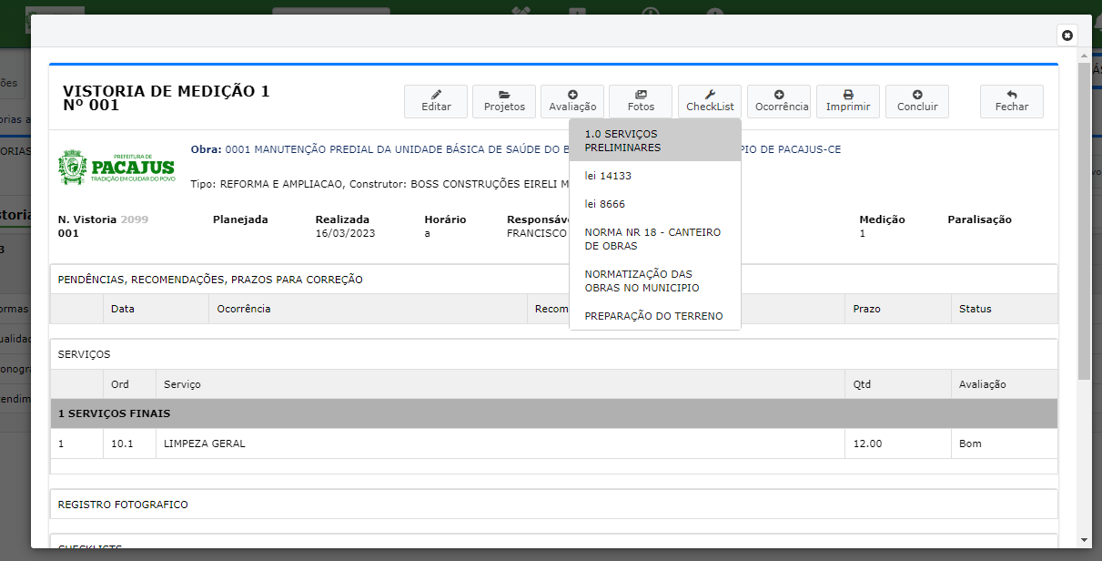 Monitoramento de Projetos de Vistorias com checklists online em uma unica plataforma.